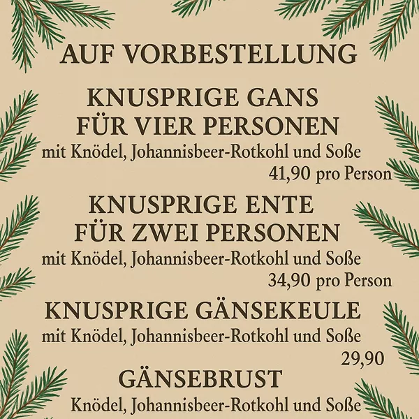 Wir freuen uns, Sie in unserem Hause begrüßen zu dürfen, und werden uns bemühen, das von Ihnen in uns gesetzte Vertrauen mit unseren hausgemachten Gerichten zufrieden zu stellen.